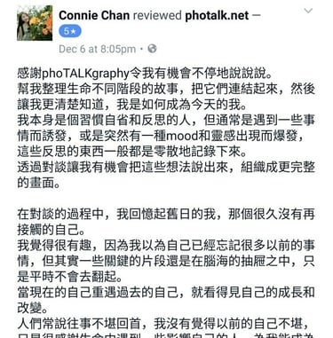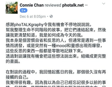 "I approached the interview with Monique with a mindset of "storytelling," and the results exceeded my expectations! Not only did I thoroughly enjoy the entire process, but it also strengthened my sense of "ownership" over my own life. I greatly appreciate the facilitator, Monique. She exuded confidence and naturalness from the start, making it easy for me to begin sharing my inner thoughts in a relaxed manner.