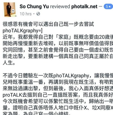 "During my phoTALKgraphy session, I truly felt the freedom to speak openly. Even when the conversation moved beyond the main topic, I could share my perspectives naturally, and that made me feel respected.